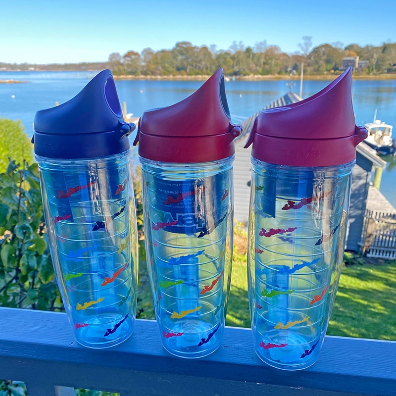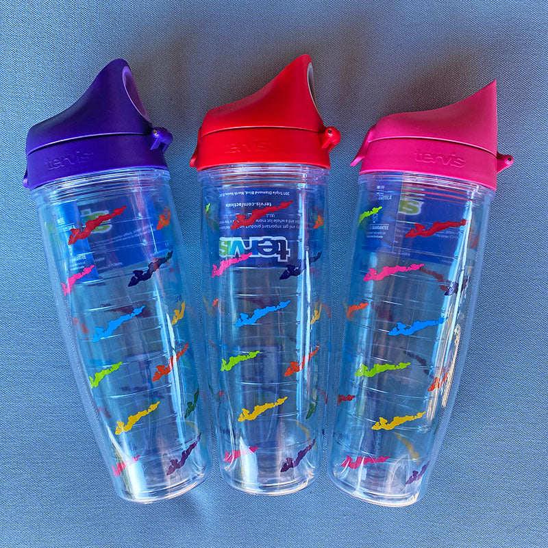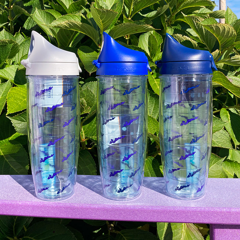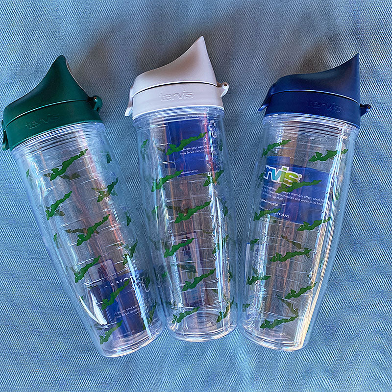 A NEW addition to our custom FI emblem family of Tervis Tumblers. Available in rainbow, green and blue, this 24 oz water bottle comes with a color coordinated watertight, drinkable lid.