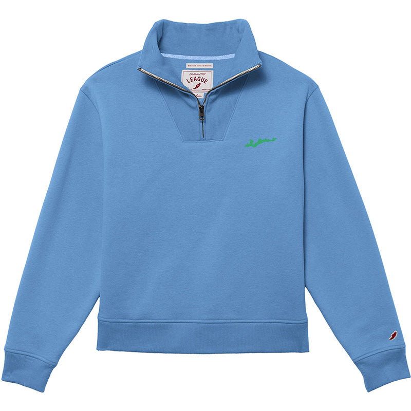Look chic while running errands or playing pickleball in this League 1991 Women’s Quarter zip. The fold-over rib knit collar creates a standout look!