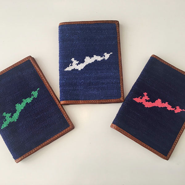 The perfect gift for the traveling member of your family. This hand stitched needlepoint passport cover is lined with beautiful leather. Made in Vietnam, Three colors available.